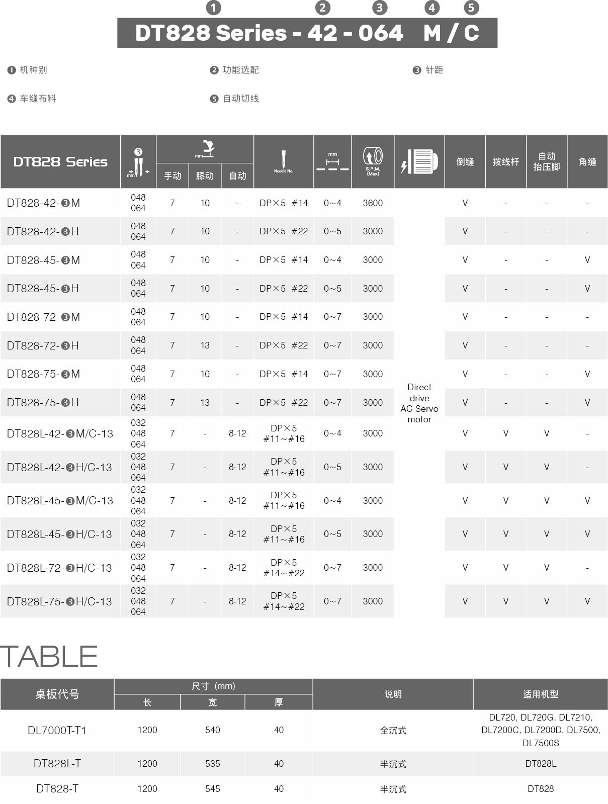 ■ 本机采用 750W 大功率伺服电机直接驱动,噪音低、振动小,安装方便,启动停车反应迅速,机针贯穿力强。