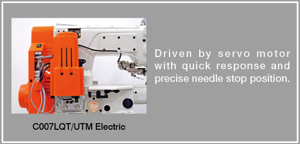 Stepping motor drives auto thread trimmer and foot lifter. Solenoiddriven upper thread gripper, not limited by air pressure. Sufficient power, soft sound, easy adjustment and maintenance with longer service life.
