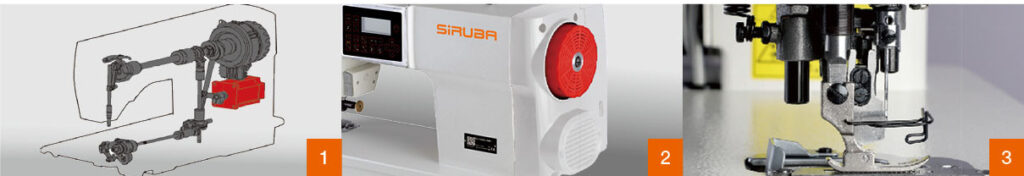 Stepping motor controls reverse sewing and needle movement. Actual precision can be as 0.1 mm. Needle gauge, which can be locked in, is precise with sewing repetition. It would not have the issue of unstable needle gauge using with traditional needle gauge device.