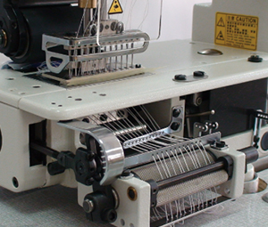 This model is applicable to elastic band winkled type, flat type, light denim, which offers various 4-needle gauges by one set.E.g.: 1/4-1/4-1/4, 1/4-3/4-1/4…etc.