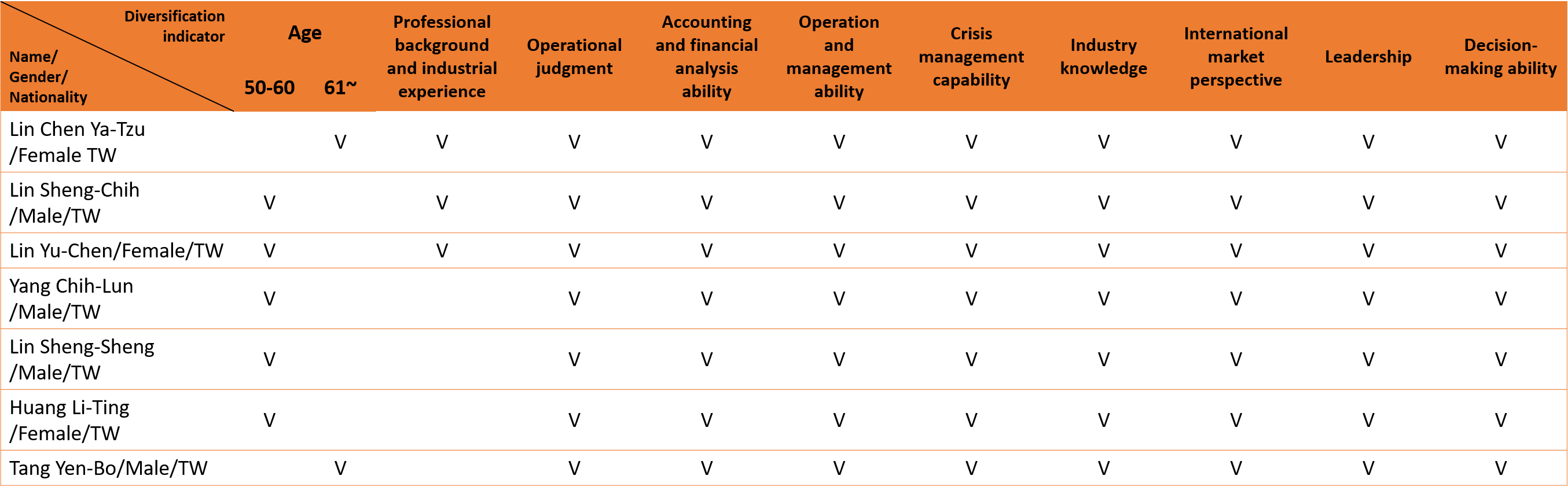 Our company currently has a total of 7 board members, including 4 independent directors, all of whom possess management expertise in business, finance, accounting, or company operations. The future composition and backgrounds of our board will continue to follow the current structure. The election of directors is conducted through a candidate nomination system, where the shareholders’ meeting selects from a list of director candidates.