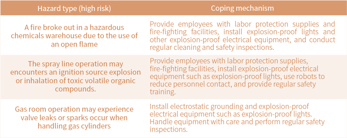 To prevent the occurrence of emergencies and respond swiftly and effectively to potential hazards, SiRUBA has developed an “Emergency Response Manual for Disasters,” which provides necessary handling measures to minimize injury, reduce loss, and prevent secondary environmental pollution. Common hazards at our company include accidents due to careless operation, which are addressed through administrative directives and preventive measures.